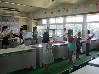 1年生の音楽では、今日から立って「きらきら星」の演奏の練習をしました。