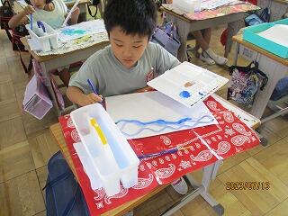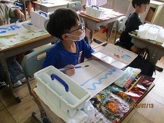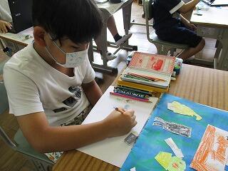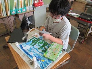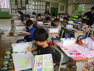4年生は図工の時間。取り組んできた絵もずいぶんできあがってきました。