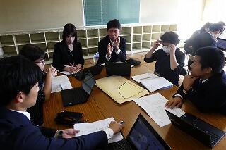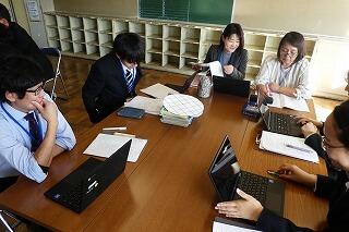 クロームブックを使って現地の建物の中を見ながら計画を練っていました。