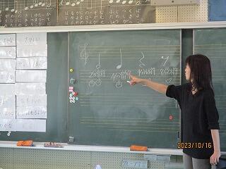 1年生の音楽では、今日も歌や鍵盤ハーモニカを使って楽しく練習をしました。