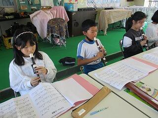 4年生の音楽では、歌を歌ったり、リコーダーで演奏したりして一生懸命取り組みました。