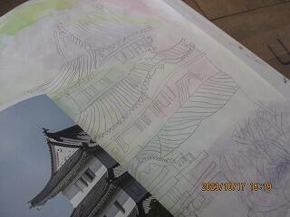 お城の特徴をうまくとらえ、丁寧に色をのせていました。