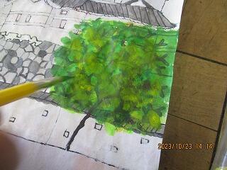 木の葉っぱも1枚1枚色を変えながら点描で丁寧に染めていました。