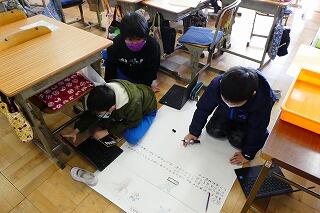 1年生は幼稚園・保育園との交流会の準備をしていました。
