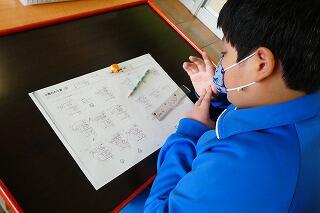 自分の進度に合わせて、時には道具を使ったり、先生に教えてもらったりして問題を解き進めました。