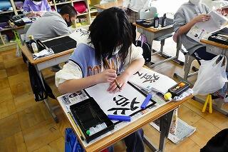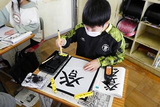 4・5年生の習字の様子です。「止め、はね」に意識して練習しました。