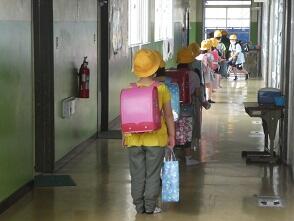 他の1年生は教室で静かに待ちます 6年生はこのように待っていました