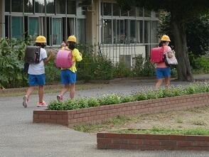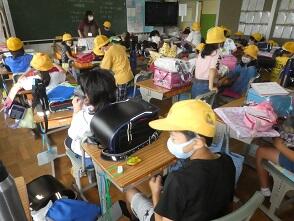 9月2日(水)、日が差したり雨が降ったりと1日中不安定な天気でした。午前中にはWBGTの数値が上昇したため、木小タイム以降の屋外での活動は中止としました。下校時間帯には、雷が鳴り急な雨が降ってきました。4年生から6年生は雨が小雨になるまで待機したので、下校が10分程度遅れました。