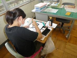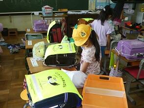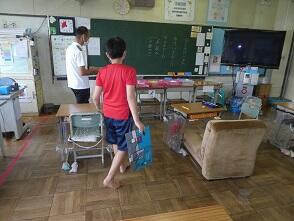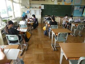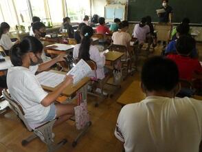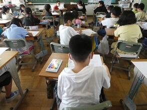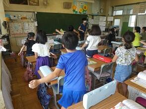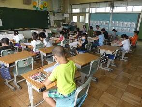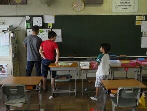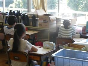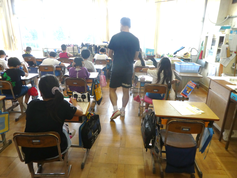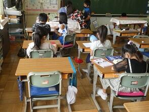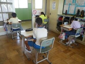 8月24日(月)、夏休みが終わり今日から子ども達が登校してきました。驚くほど日焼けした子どもがいましたので、理由を聞いてみたところ、家のプールに毎日入っていたということでした。今日は給食無しの3時間授業で下校です。2時間目に校舎を回ってみました。
