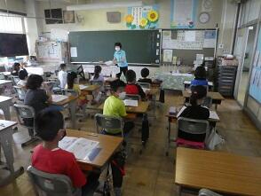 3年生は音楽を学習中。残念ながら歌なしです 4年生は理科の学習をしていました