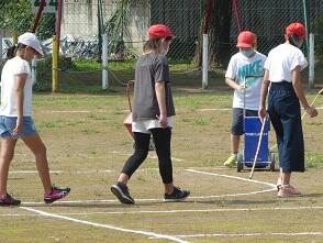 今日は朝から蒸し暑い日となりました、WBGTの数値が時間とともに上がってきたため、体育の学習はできる限り早い時間繰り上げてに実施しました。今日は5時間目の学習をみてきました。