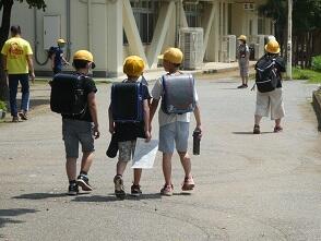 今年初めての避難訓練を行いました。外に避難しました。汚れた上履きを1年生が洗っていました