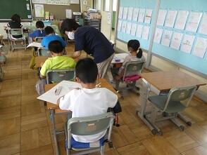 1年生は国語の学習中でした 2年生は算数の学習でした