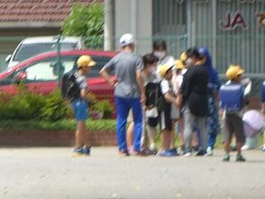 正門付近でも子ども達は遊んでいます。鬼ごっこ(かくれんぼ)に夢中になっていました