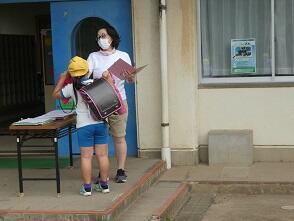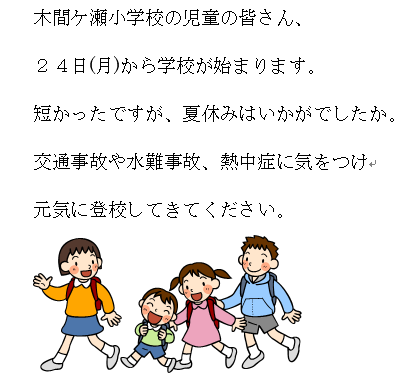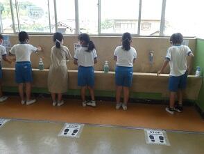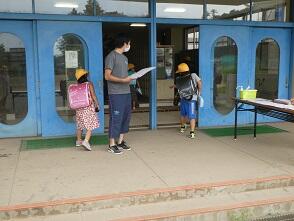 学校が始まり3日目。夏休みがあったせいか朝の体温確認を忘れたり記入を忘れる児童が見受けられます。今週は職員で昇降口前での確認と教室に入る前の手洗い確認を強調しています。