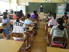 4年生は体育館で体育を3年生は教室で国語の学習中でした