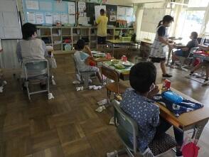 1年生は国語(大きなかぶ)のお面作りでした 2年生は学級活動(夏休みの生活)についてです
