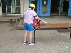 *子ども達が帰った後、職員で教室のロッカーや扉、机や棚、トイレなどを消毒します。昨日の放課後の様子をお知らせします。
