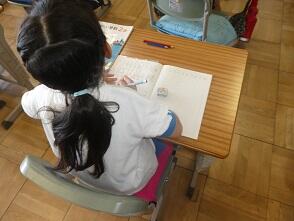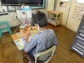 ゆりの木2組。国語を学習中でした。漢字ドリルを進める子、音読をする子。課題が個人個人でした。