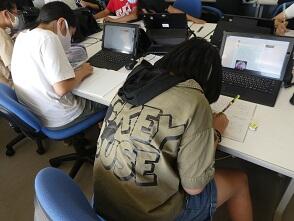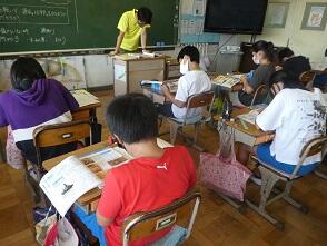 9月8日(火)、朝から日差しがありました。WBGTは27前後で警戒レベルでした。2時間目の学習風景をお知らせします。