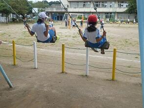 業間休み、子ども達は外で遊ぶ子が多くいました。日陰にいる子も多数いました