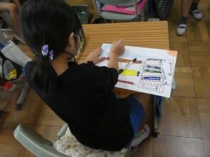 6年生の子ども達が、昼休み1年生のために学校行事のイラストを描いていました。