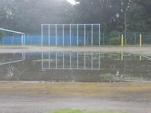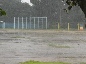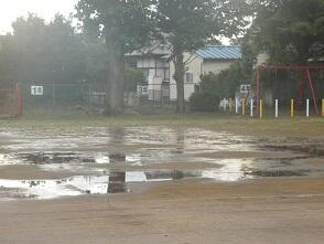 4年生以上が下校するころ、急に雨が降り出しました。15分程度の雨でしたが校庭は水浸しでした