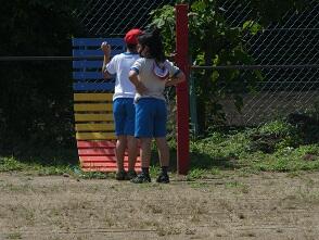 こちらは昼休み。涼しかったせいもあり、子ども達は遊具で遊び走り回っていました