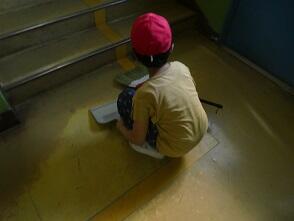階段を掃除する4年生 これは何でしょうか?・・・・・・ 答えはカボチャです