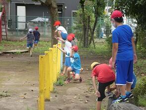 8月31日(月)、例年と異なる8月が今日で終了します。先週は、気温や湿度が高く外遊びができない日がありました。今日は、風が涼しく体育や野外観察、外遊びを行うことができました。このまま涼しくなっていくことを願います。