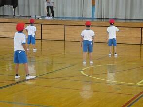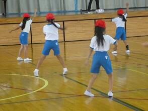 1年生は体育館でダンスをしていました。手足を一生懸命に動かしながら踊っていました。
