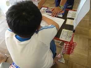 7月7日(火)、七夕ですが生憎の雨です。夜に晴れることを祈ります。学校内を回ると、3年生は体育館で体育を、4年生は教室で習字をしていました。さらに回ると、遅れていた発育測定が本日から始まっていました。今日は6年生が身長・体重を測っていました。