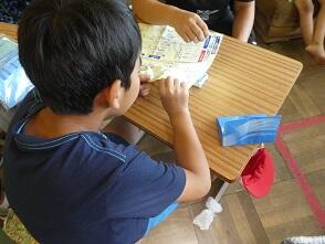 先生の説明と実演の後、子ども達が2つめの実験に取り組みました