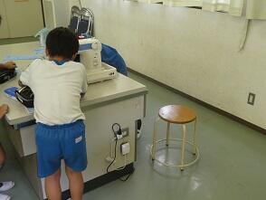 5年生は家庭科で電気ミシンの使い方を学んでいました。下糸の通し方など苦戦中のようでした