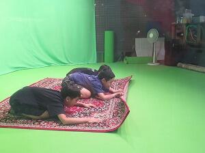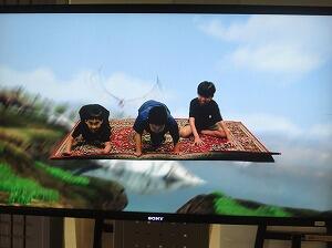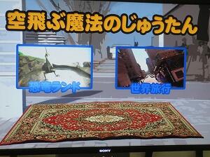 魔法の絨毯体験 グリーンバックのスタジオの絨毯に乗るとなんとまあ、空を飛んでいる映像に
