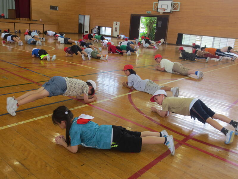 6月25日(金)昼休みに体育委員会の企画で「みんなで運動しよう会」という集会が行われ、全校児童で実施しました。任意ですが、昼休みにたくさんの児童が体育館に集まりました。みんな必死に運動していました。とてもいい児童の企画です。