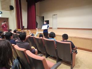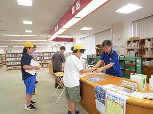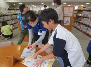 図書館に移動 図書ラリーをして司書さんに答え合わせをしていただきました