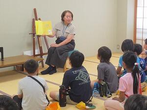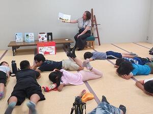 和室に移動し、読み聞かせです 5冊読んでいただきました 最後の図書では本に合わせてヨガの実践です