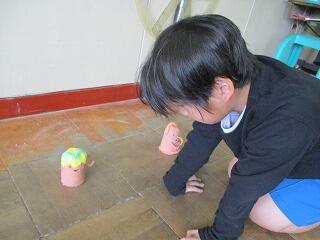 3年生では、パチンコの台を完成させようと釘をとんかちで打ち付けていました。