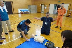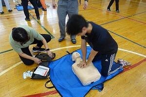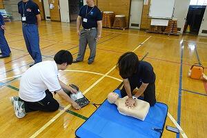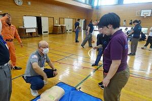 6月後半からいよいよ水泳指導が始まります。それに伴い先日はプール掃除を行い、今プールに給水を行い、水質検査をしているところです。そして、毎年野田市消防署関宿分署の方を講師に招き、職員が救命救急研修を受けています。毎年行っても身の引き締まる思いで行っております。