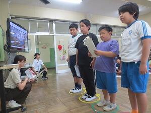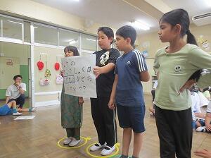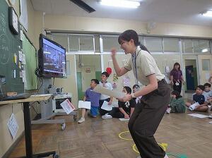 クイズ大会では二川小の児童がジェスチャーで答えます
