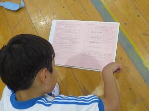 2年生 体育カードに自分のめあて・振り返りを記入し、発表します