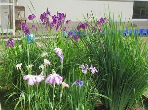 菖蒲(だと思います)がきれいです ナスも実が付きました