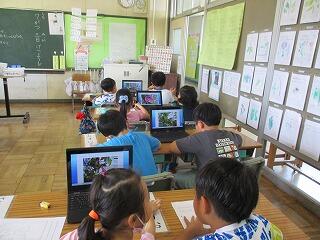 3年生は、社会科の学習でタブレットを使いました。消防署の役割や消防署職員の仕事について調べてノートにまとめました。