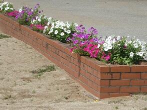 山田さんが職員室前のの花壇をきれいにしていました