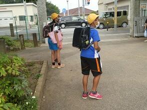 早く学習が終わる学年が帰ります。まだ明るいです。写真は2学年