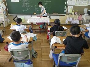 3年生は音楽を学習中。残念ながら歌なしです 4年生は理科の学習をしていました