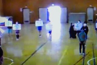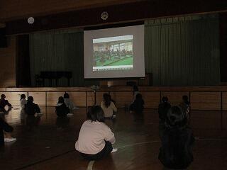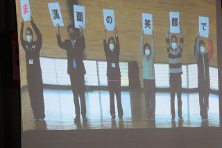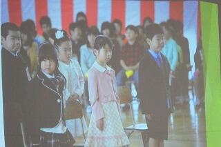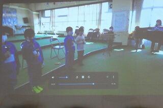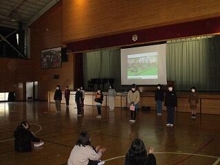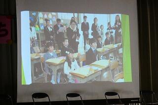 次に、職員による発表。ビデオレター形式による6年生へのエールを贈りました。