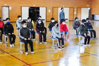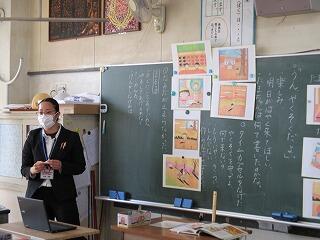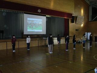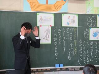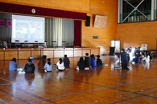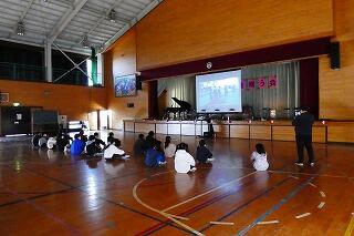 集会では教務主任と6年生の担任の先生からのお話がありました。