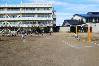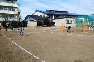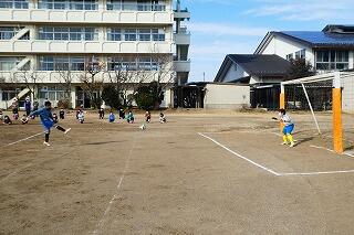 部活動のお別れ試合を行いました。サッカー部は6年生と在校生、先生PK対決です。